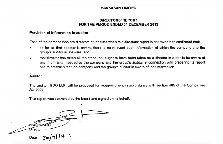Indeed Hakkasan’s 2013 accounts, signed off by Al Qubaisi himself, show that by the end of 2013 the Hakkasan Group had already received $266,000,000 in ‘shareholder loans’ from its parent company, which was cited as Tasameem, which is itself also owned by Al Qubaisi: