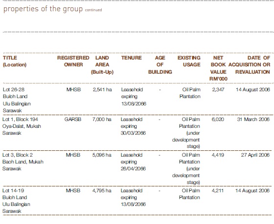 However, the ownership quickly moved on from the Mahmuds of course. In 2006 the publicly-listed palm oil plantation company Kwantas announced that it had acquired 70% of the shares of Miracle Harvest (MHSB), along 70% of the sister company Green Ace Resources, which is also registered under the Kumpulan Parabena address. It can only be as part of the same set of deals that Green Ace Resources (GARSB) was handed a huge area of 7,000 hectares in Mukah in the region of the Sungai Narub Reserve Forest on the very same day in 2005 that Miracle Harvest gained its own land titles.