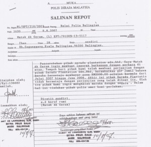 On the other hand when, after filing a court complaint in 2008, the kampongs mounted a blockade against the plantation-workers they sparked a brutal reaction. Matek was arrested in an early morning raid by 10 armed police officers and thrown into a cell, charged with the ‘offence’ of restraining the oil plantation workers.