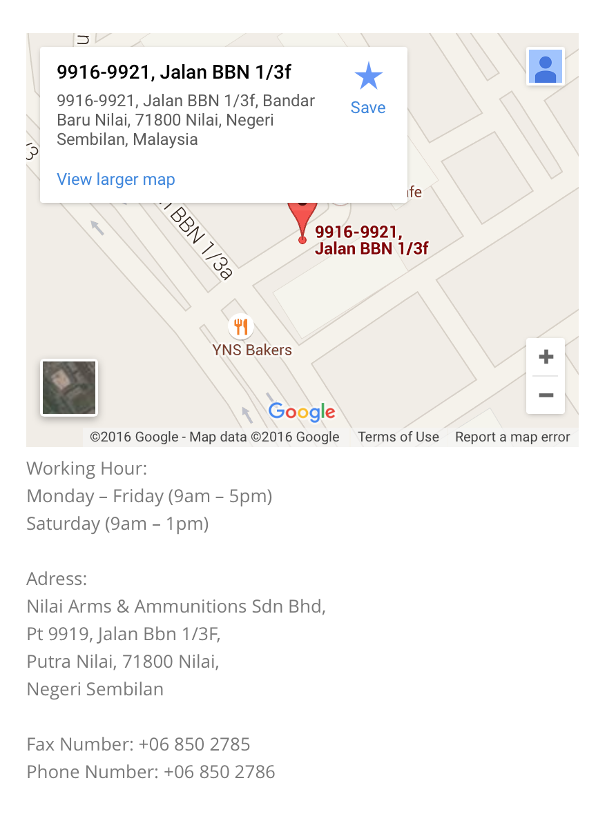 Nitihka munyi nama kompeni nya, Nilai Arms & Ammunitions endang bejualka bemacham-macham seterum tauka peluru.
