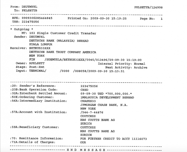 Later, in 2011, a second direct payment was picked up by Bank Negara of US$330 million, again direct from 1MDB to the same Good Star Limited account. Thanks to the PetroSaudi papers we have a complete copy of the original bank transfer and all the emails surrounding the dramatic theft of nearly a billion dollars: