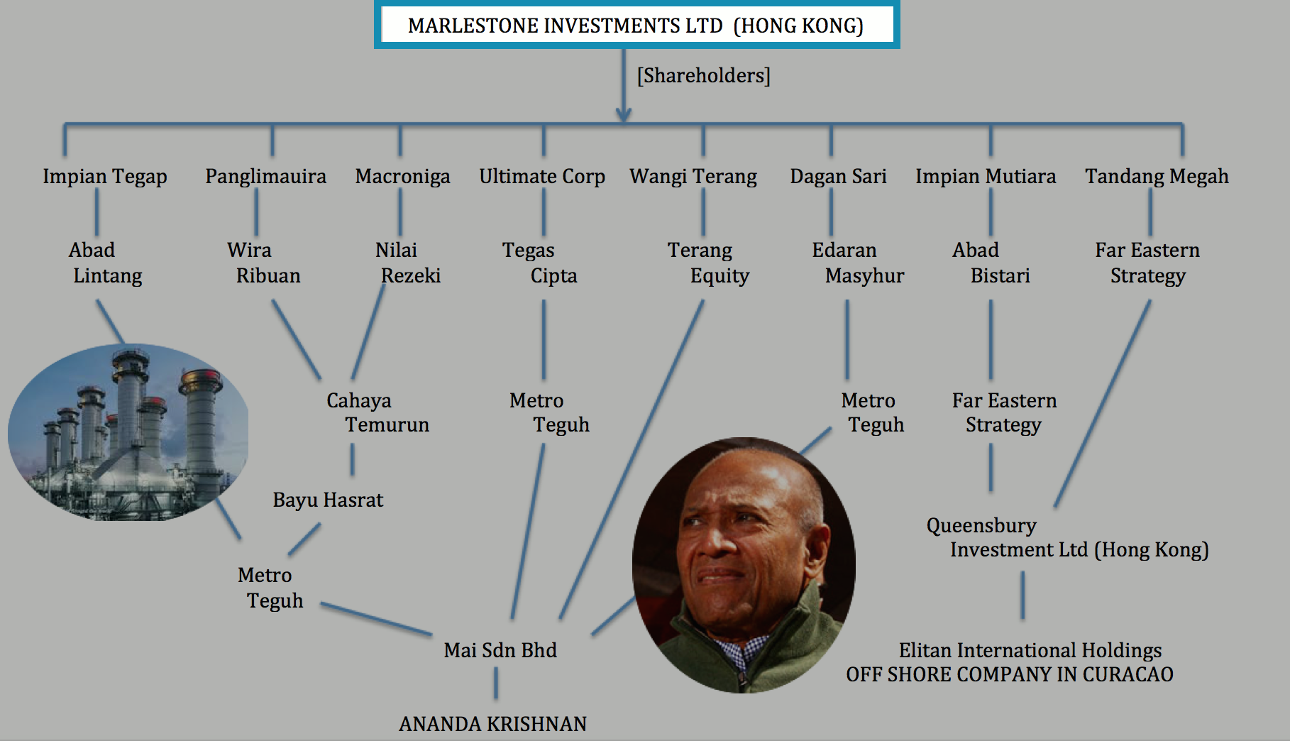 The three payments were made from the Hong Kong based Marlestone Investments, which Sarawak Report has ascertained is owned by Ananda Krishnan through a highly elaborate web of Malaysian and Curacao companies (see below).