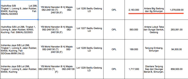 Challenged over Hydroflow’s appropriations just a short while ago Naroden Majais confirmed that the project had been ordered by Taib Mahmud. It was promoted as part of a supposed small shareholder project to benefit local people, who were given stakes in 30% of the land through two companies, which were none the less fully controlled by the major shareholders.