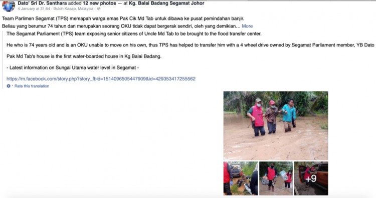 “His constituency was hit by floods in January, but he wasn’t there in to help his constituents – all events attended by his PA. Early January during the Wilayah Day celebration Santhara was awarded Datuk Seri title by the King but he wasn’t around to receive the award as well because he was already in New Zealand by then!”