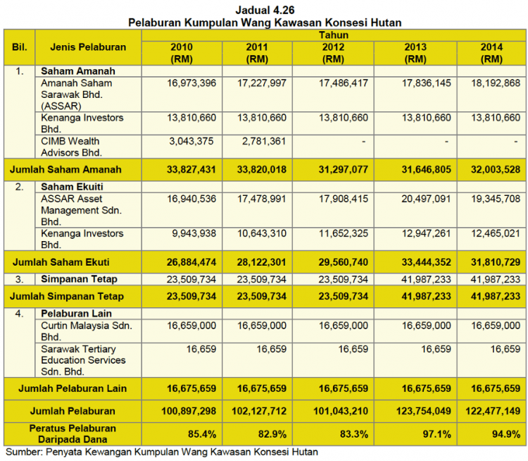 The Forest Concession Area Trust Fund (LKWKKH) was created in 1985 by then chief minister Taib Mahmud in a bid to pacify native communities who were protesting the destruction of their homelands by promising them economic development. In a crushing move against Sarawak’s indigenous people and democracy, the same ordinance also threatened them with police and military action if they continued to protest the logging.
