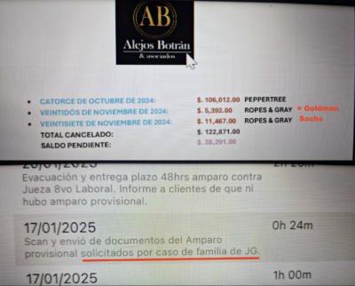 From that point complaints by Jorge Gaitan’s local lawyers started to emerge that they were no longer being paid for the invoices they were sending in to Peppertree and Goldman Sachs. The prominent Guatemalan lawyer, Ana Lucia Alejos Botran, is now publicly revealing on social media that her bills have not been met since April 2025 with some $700,ooo now outstanding. It is a telling date.