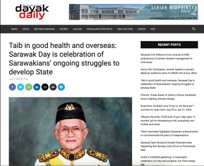“And finally, I would like to express my appreciation and gratitude to all the people of Sarawak who have prayed for my health and well-being all this time,” said Taib in his Sarawak 60th Independence Day Celebration.